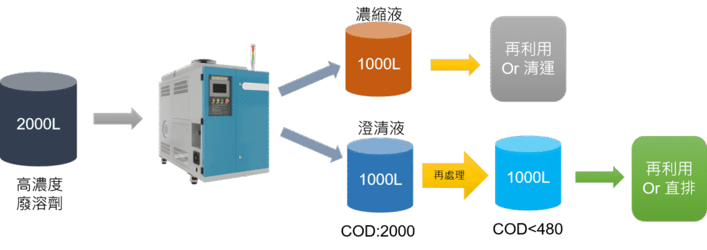 低溫真空蒸餾流程圖|廢溶劑回收|切削液濃縮